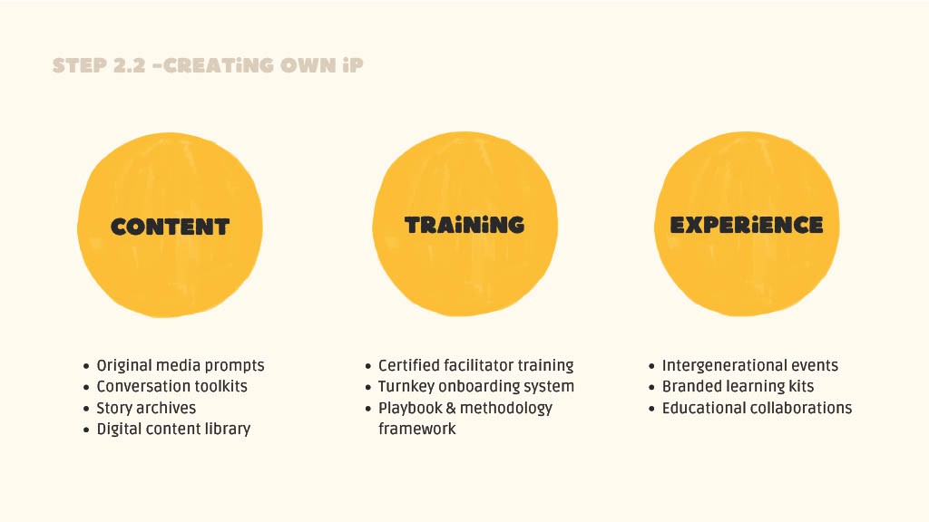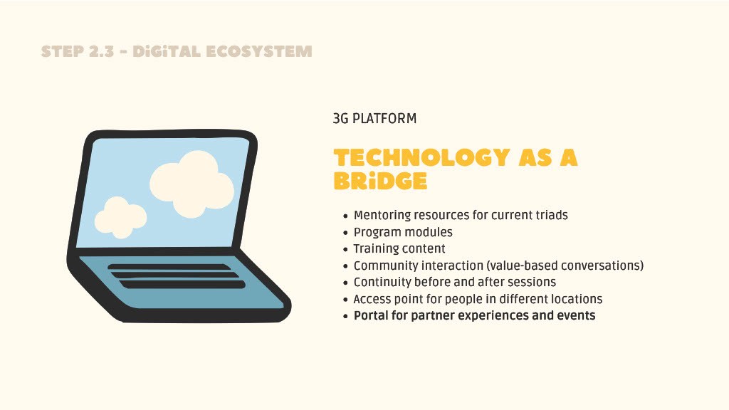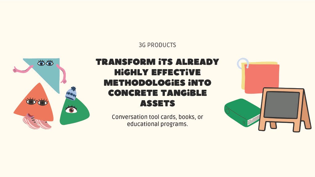 Define mission-aligned revenue streams that can transform 3G Mentoring's already highly effective methodologies into tangible products (e.g. conversation cards, books, educational games and programs)
