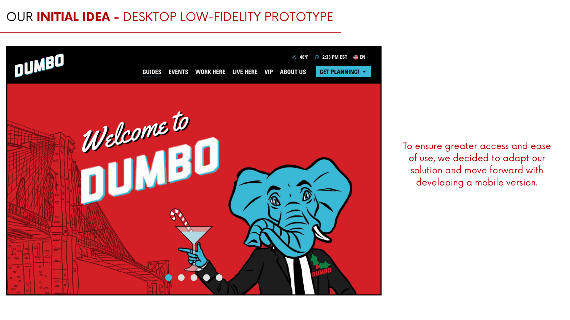 Based on user testing insights and concept interviews, we shifted to a mobile-first experience to support on-the-go navigation, planning, and discovery for tourists